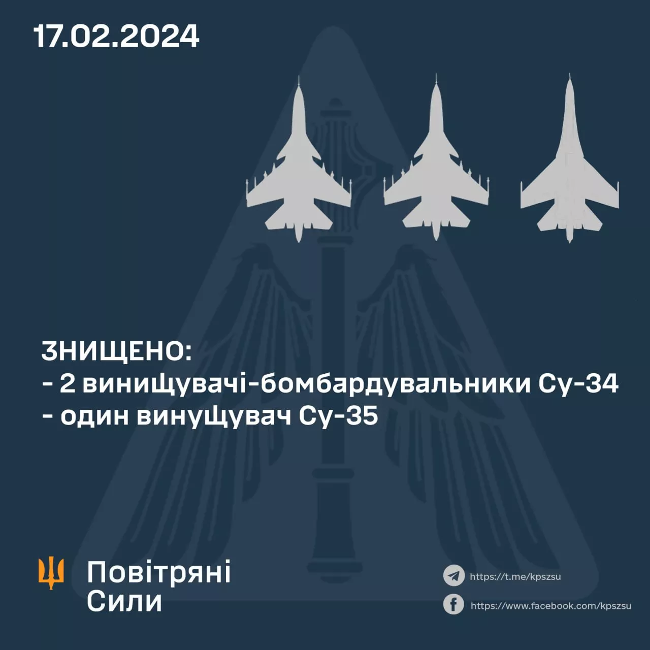 Таким чином ворог утратив два літаки-винищувачі Су-34 та ще один Су-35. Подробиць про долю екіпажу не надавали.